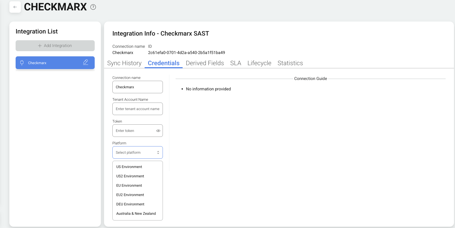 Navigate to Integrations in the NopSec UI and select the option to add the Checkmarx