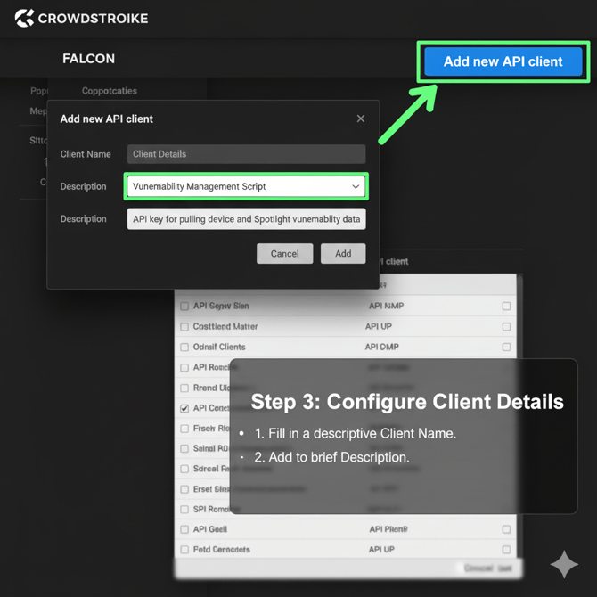 - Client Name: Give your API client a descriptive name (e.g., "Vulnerability Management Script").